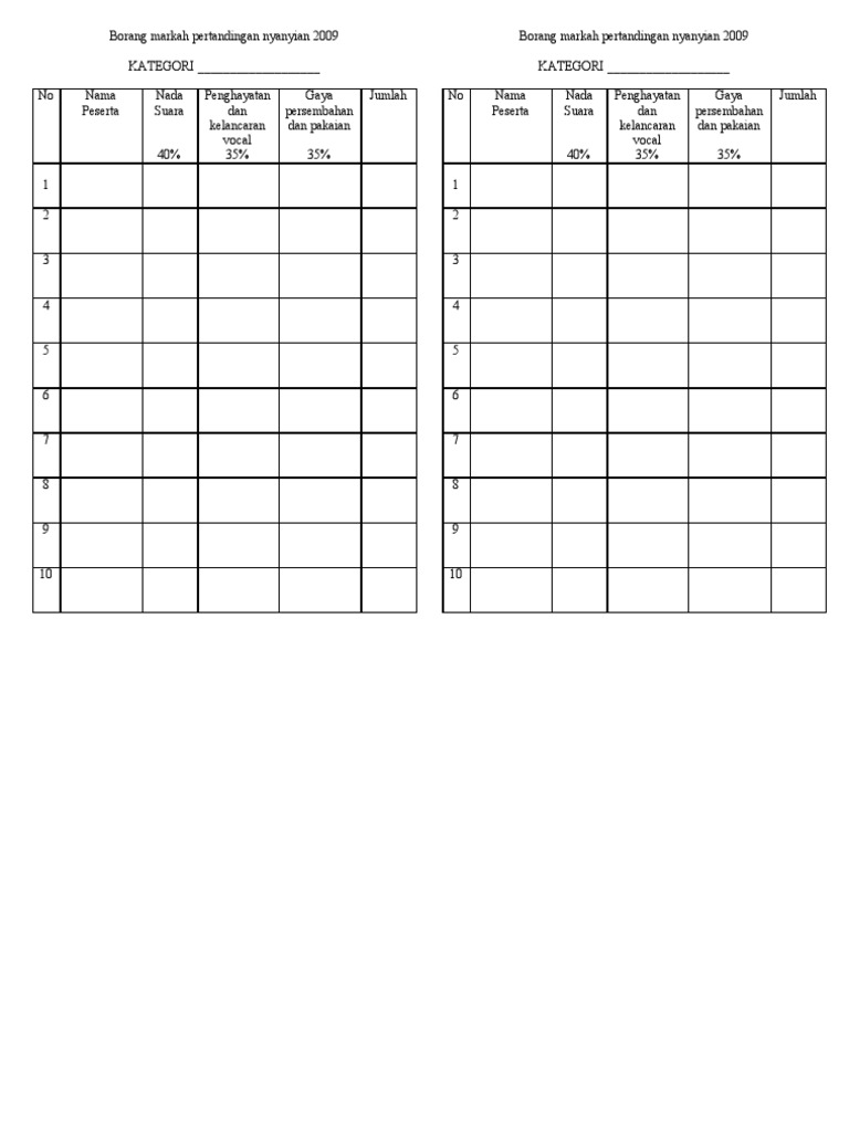 Borang Markah Pertandingan Bakat Nyanyian 2009 Pdf