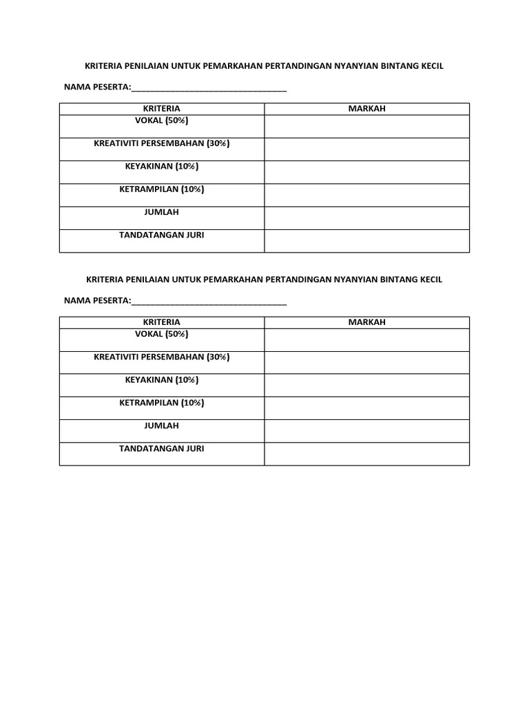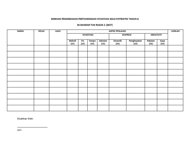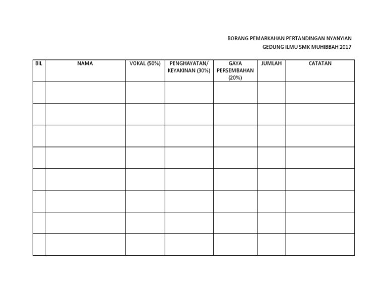 Borang Pemarkahan Pertandingan Nyanyian Pdf